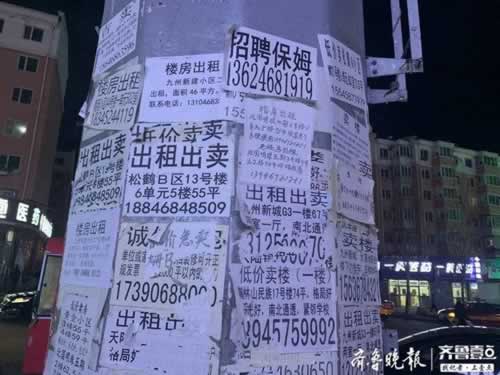 11月7日下午,小城鹤岗的温度已达到零下7摄氏度,街上行人寥落。卖房租房的广告张贴得满城都是,却无一人驻足。