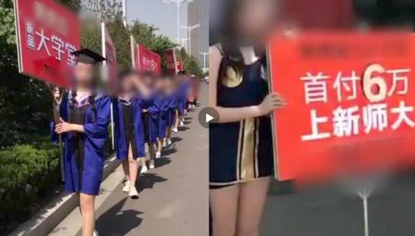 实拍山西一楼盘请女学生穿学士服促销称师大小姐姐喊你买房视频