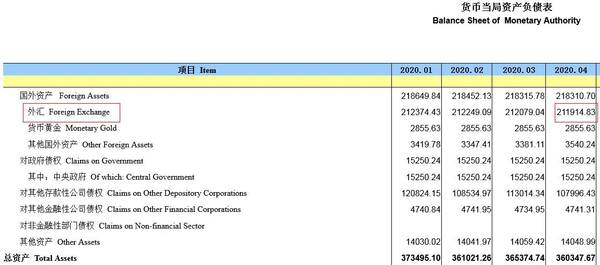 中新经纬客户端5月14日电 中国央行14日公布数据显示,2020年4月,央行口径外汇占款为211914.83亿元人民币,环比减少164.21亿元人民币。
