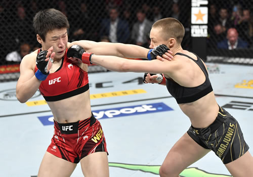 这场比赛被认为是张伟丽的复仇战——今年4月份的首次较量中,罗斯78秒速胜,张伟丽不仅丢掉了金腰带,长达7年在MMA赛场的21场连胜也就此作古。