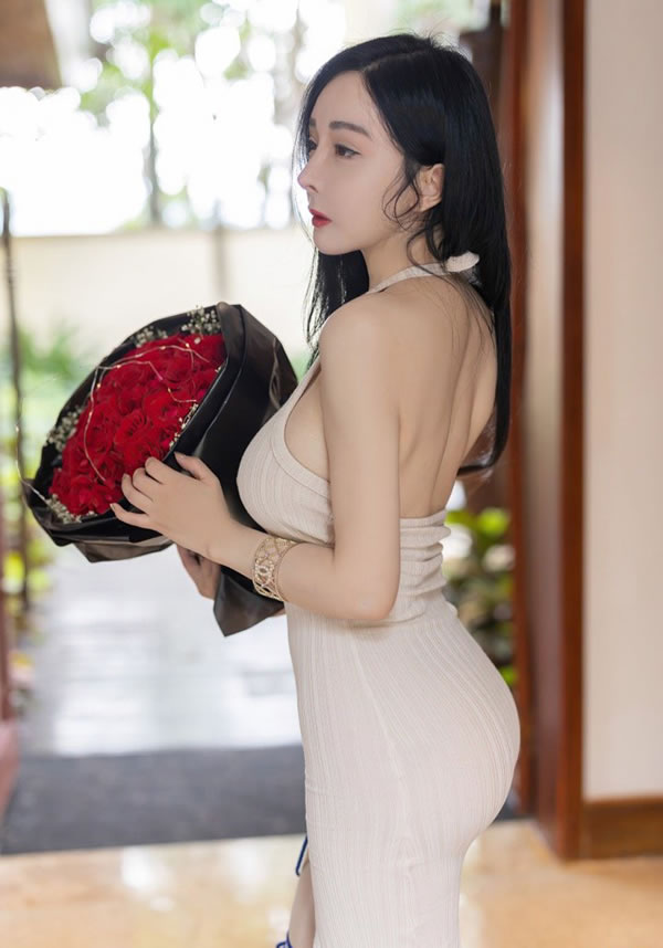 模特允爾激凸吊带裙满足你对大幂幂的幻想