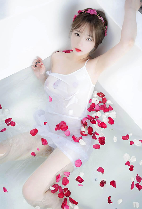 可爱小美女浴缸湿身花瓣双乳若隐若现