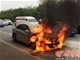西安早高峰一白色小轿车自燃 火势太大被烧成残骸